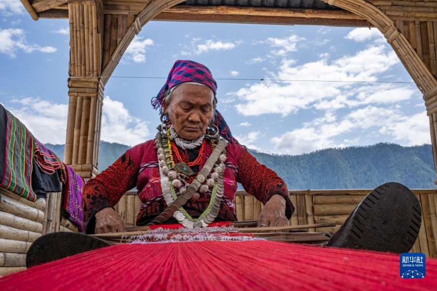 本央在編織制作僜人服飾所需要的布料(4月19日攝)。