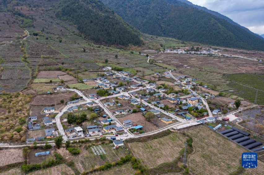 西藏林芝市察隅縣沙瓊村全景(4月19日攝,無人機照片)。