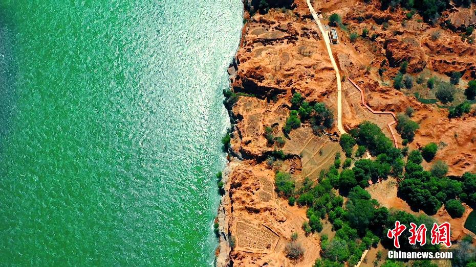 碧綠的黃河水與艷紅的丹霞相接,山水一體,阡陌縱橫,廣闊的田野,美麗的村莊,一切生機勃勃。李雋/文趙紅瑩/圖
