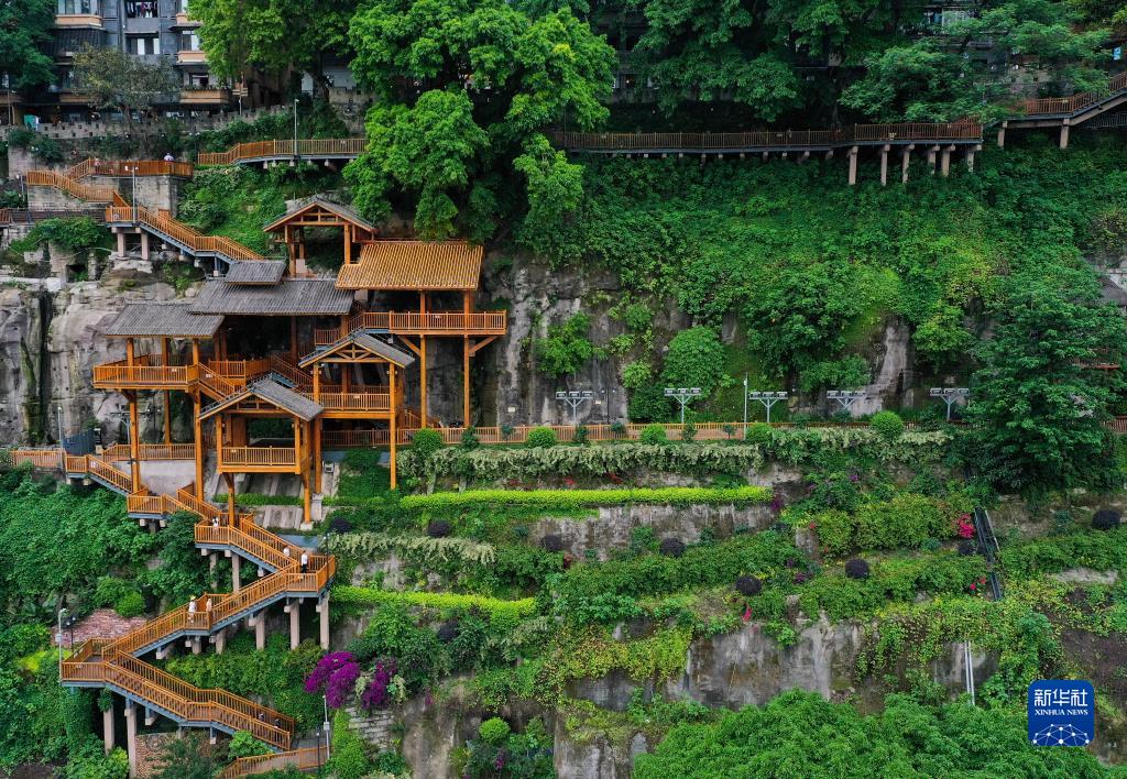 重慶市渝中區戴家巷崖壁步道(4月29日攝,無人機照片)。