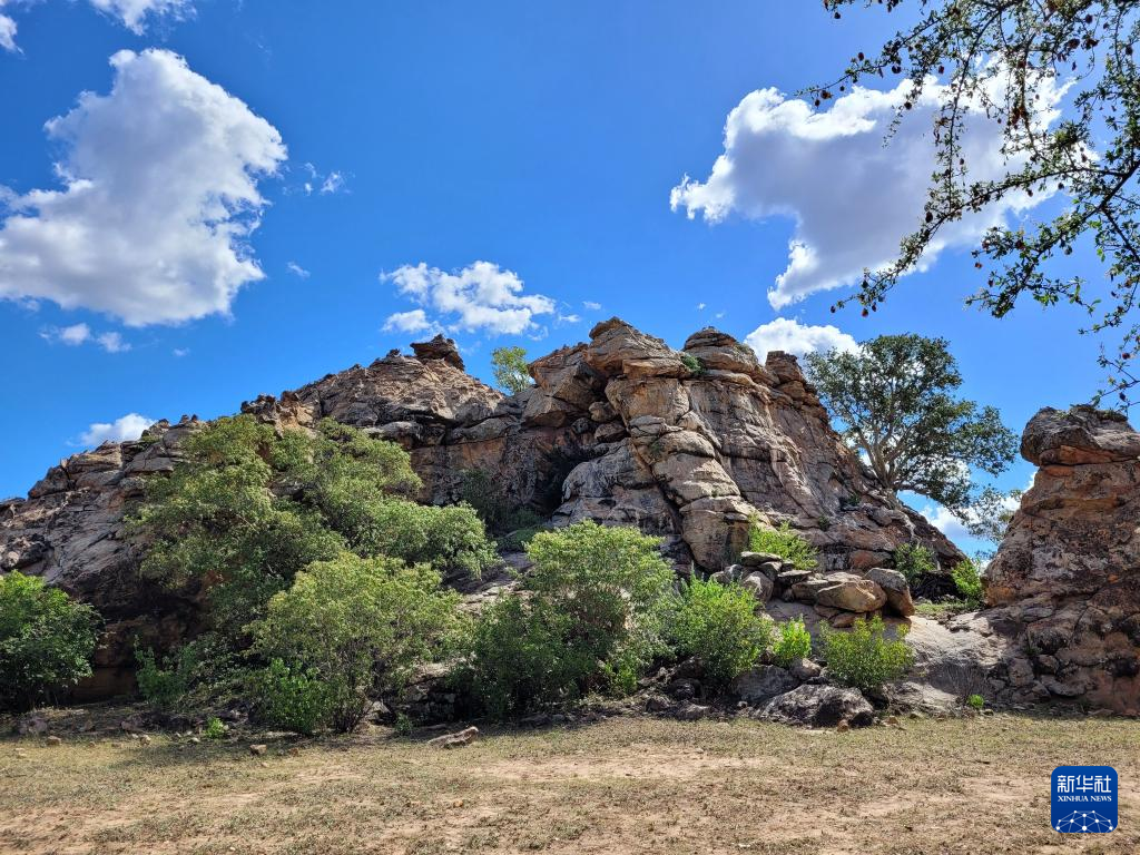 這是5月3日在博茨瓦納圖利自然保護區內拍攝的莫哈巴能巖畫遺址全景。