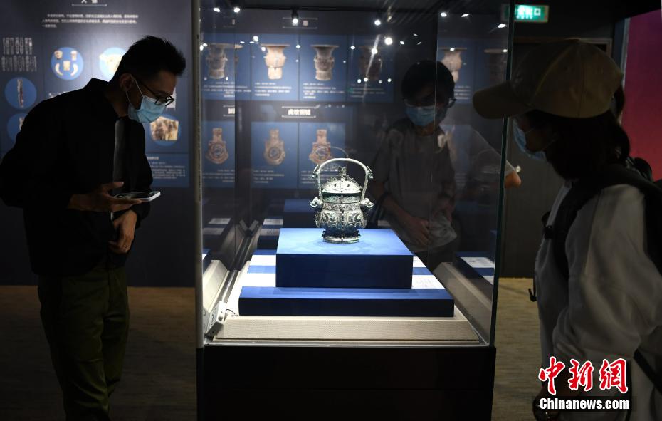 市民觀看寶雞青銅器博物院藏的伯各卣。王東明攝