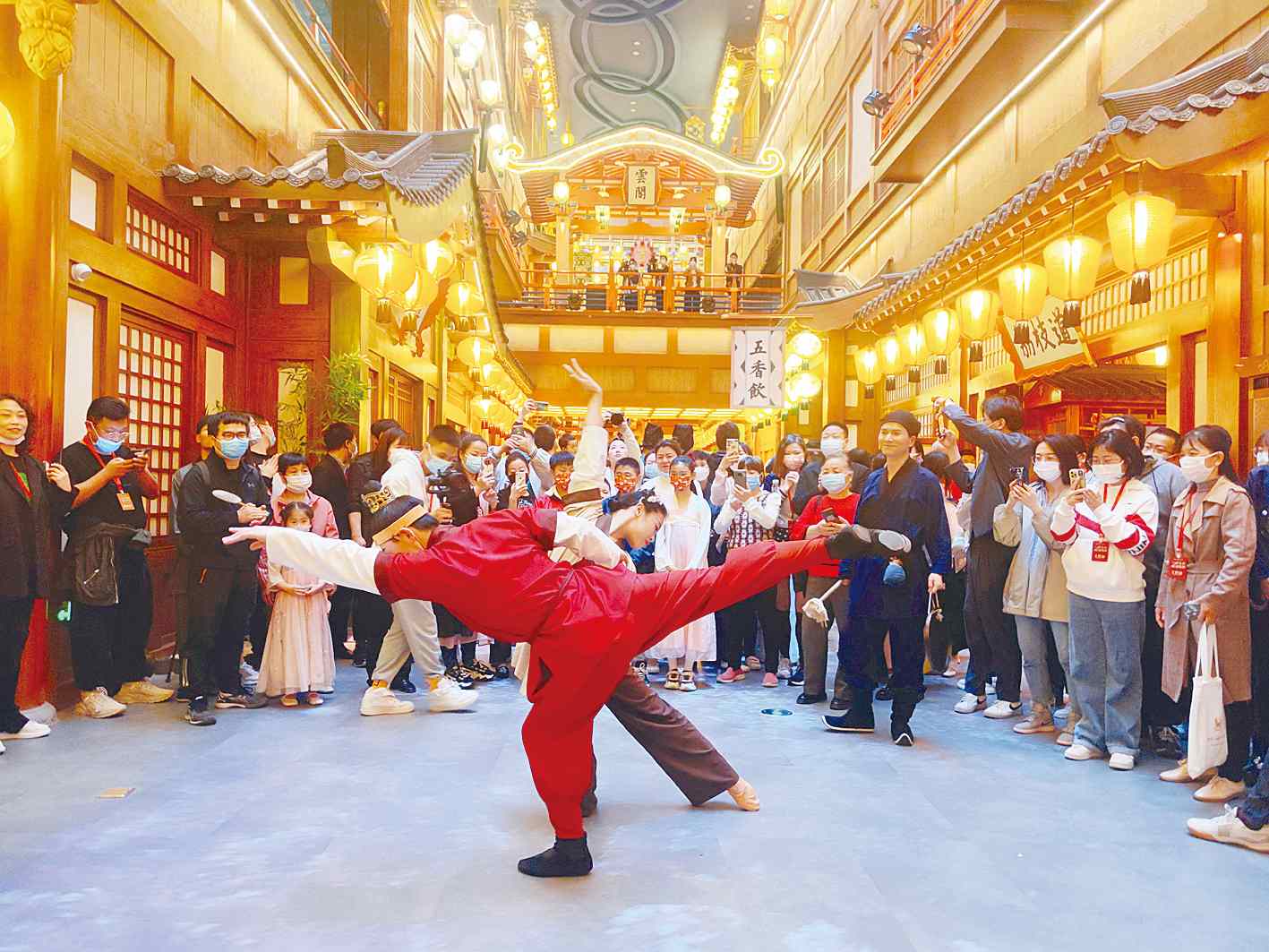 ▲“長安十二時辰”唐風市井生活街區內的表演