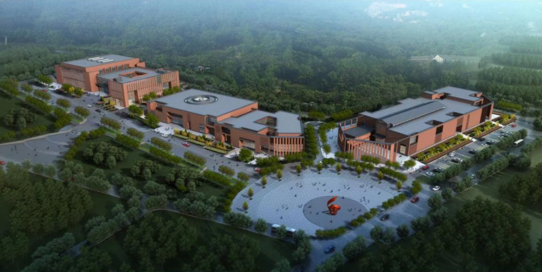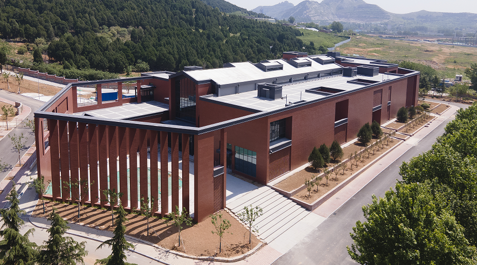 博物館新館主體建筑位于山東工藝美術學院長清校區東北部,整體沿著山體南側水平展開,總建筑面積近20000㎡,于2018年10月奠基開工建設,期間克服疫情帶來的種種困難,歷時近四年建成。新館主體建筑設計方案采用鋼筋混凝土框架結構,在延續長清校區紅磚藝術整體裝飾的同時,借鑒中國傳統院落布局形成空間意象,穿插于建筑群落當中,呈現出傳統與現代相得益彰的簡約風格。