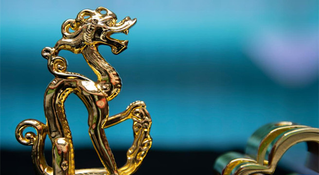 這是河南博物院文創商店內展示的鎏金盲盒(5月17日攝)。