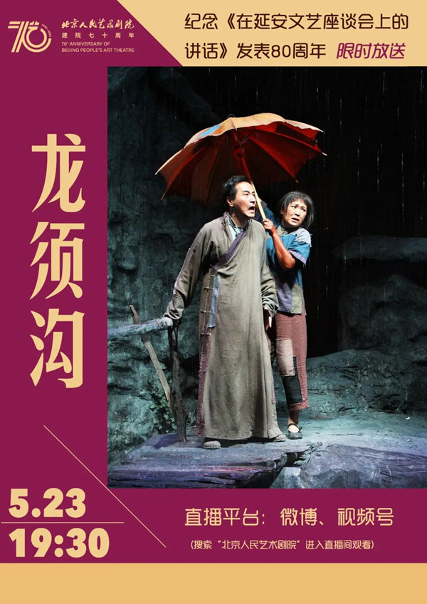 中國網北京5月23日訊 (記者 秦金月)記者從北京人民藝術劇院獲悉,為紀念《在延安文藝座談會上的講話》發表80周年,北京人藝將在5月23日晚19:30,通過北京人民藝術劇院官方視頻號、官方微博等平臺,限時放送劇院經典現實主義劇作《龍須溝》的戲劇影像。