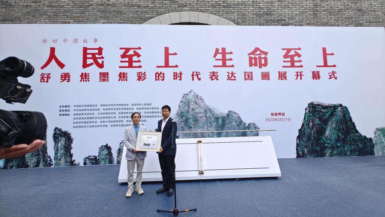5月27日上午,“人民至上生命至上”舒勇焦墨焦彩的時代表達國畫展在湖南省張家界市大庸古城世界遺產影像館開幕,并將展覽至9月底。