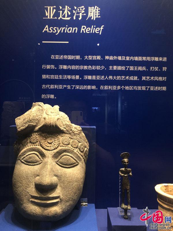 身處兩河流域、位于亞歐非三大洲十字路口的古代敘利亞,擁有多種文化交融帶來的獨特文化。展覽共分為“曙光”“變革”“爭霸”“融合”“對話”五個單元,刻有楔形文字的泥板,用于商業活動、作為現代印章雛形的滾印,祭拜者雕像、亞述壁畫、青金石項鏈等敘利亞文物精品,以及西安碑林博物館的《大秦景教流行中國碑》拓片、新疆維吾爾自治區博物館的刻花紋石碑、敦煌研究院的敘利亞文《圣經·詩篇》復制品等,展示了中敘兩國歷史上的文化交流和貿易往來,展現了中國與“一帶一路”沿線國家的傳統友誼。