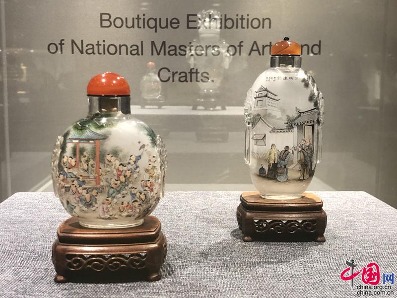 《百子圖》(左) 京城遺韻(右)內畫壺 水晶 高東升 攝影 中國網記者 蘇向東
