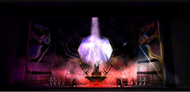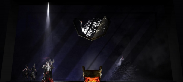 導演李罡表示,“我們選取了代表契丹文化的重要文物——八角銅鏡作為舞美視覺支點,構成劇中契丹王宮的視覺中心形象;提取了鶴類羽毛元素進行氛圍營造、創造詩意時空,使之成為捺缽濕地盛景的重要元素;在馴鹿犄角的處理以及祭祀場面的展現方面,用浪漫主義的美學思路描繪了富于北方游牧民族獨特色彩的奇妙畫卷,打造出草原曠野的獨特景致?!?/p>