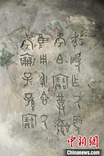 在出土的5件禮器中,有部分青銅器刻有銘文,其中青銅鬲沿面上鑄有銘文:“旂姬作寶尊鬲?!狈阶袃鹊阻T銘文:“通肇作厥圣考伯寶尊彝,唯用永念厥考子子孫寶?!鼻嚆~盤中內底鑄銘文:“嗌友作寶盤?!?/p>