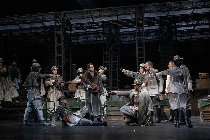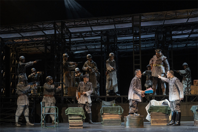 中國網北京7月14日訊 (記者 秦金月)7月13日,國家大劇院原創話劇《冬日1948》(原名《抉擇》)開啟了第三輪熱演。該劇以新中國成立前夕——1948年冬季為時代背景,在大量歷史素材基礎上進行藝術再創作。著名演員吳京安、洪濤、宗平、尹詩先、劉大為,攜手柳文伊等國家大劇院戲劇演員隊演員共同組成強大的演出陣容,在全金屬框架式舞臺再現戰爭場面,熱血演繹英雄群像。