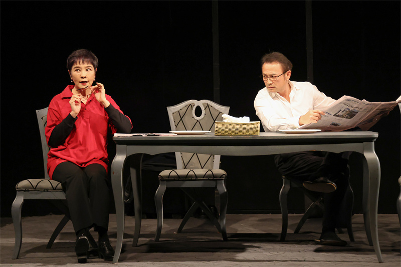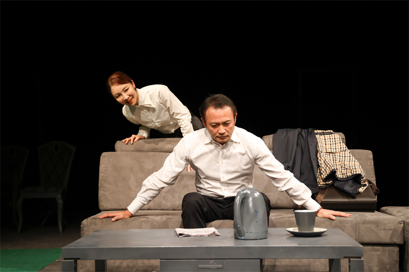 作為與丁志誠在一起磨合十三年的老搭檔,劇中妻子的扮演者梁丹妮一直在十三年的舞臺打磨中豐富細節。演出中,她在一個轉身后加入“撓背”的動作,獲得現場觀眾積極的反饋,“他們從中可以看到這個女人在家的不拘小節?!闭沁@樣一個個生動的細節,讓人物更加真實?!昂脩蚰軌虺Q莩P?,雖然臺詞和調度不改變,但是我對人物的詮釋會隨著時間改變,現在我把原來一個被動的女性,演繹成了一個更有主動權的新女性。這可能會更符合當下觀眾的認知?!绷旱つ菡f道。
