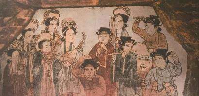 此外,因宋元時期說唱藝術唱賺、諸宮調以及各種組合形式的器樂演奏活躍于城鎮各處,加之戲曲在此時已發展為成熟的藝術形式,北方的雜劇和南方的南戲涌現出眾多的作家和作品。山西、河北、河南等地發現的雕磚、壁畫、陶俑、石刻等與戲曲有關的文物和描繪百戲的散樂畫面,都是當時民間散樂百戲活動的本相,如河南禹縣白沙宋墓壁畫散樂圖、河北宣化遼墓壁畫散樂圖、山西大同北郊臥虎灣二號遼墓東壁壁畫散樂圖、河南焦作金墓散樂畫像石等。