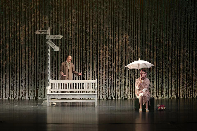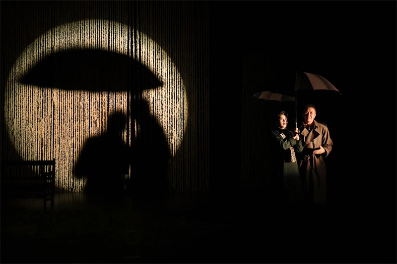 “我覺得我們不是在演外國人,而是在演人,人的情感是共通的?!敝餮堇钣妆髲娬{,盡管這是一部外國戲,但通過對人性的演繹,能夠讓中國觀眾產生共情?!斑@個戲的劇本太好了,它不是單一的情感戲,具有很大的沖擊力。劇中人物身上有著深深的戰爭帶來的創傷,我們表演的時候要時刻帶著這樣的背景?!崩钣妆笳f道。而劇中兩個角色慢慢靠近的過程,也是兩位演員依靠表演慢慢推進的過程。其中真實細膩,又層次豐富“比如我這個人物開始為什么口是心非,因為她要掩蓋自己內心的傷痛?!笔诽m芽這樣解讀自己的角色。正是這樣的表演讓觀眾能夠進入角色的內心世界去慢慢品味,體會人物的思想和情感。一個舞臺,兩位演員,每一次的碰撞都是一次心靈的交匯,甚至全劇結尾兩個人物不用刻意表現情感,用一個靜止的畫面就展現出“一切盡在不言中”的情感升華。