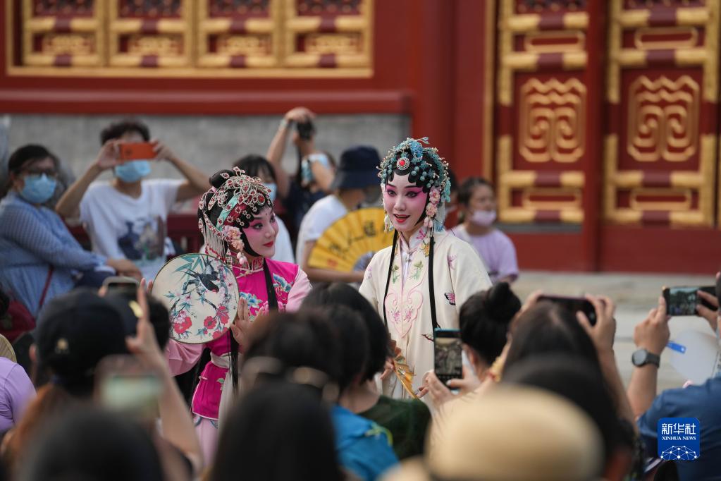 7月30日,市民游客在欣賞北方昆曲劇院演員表演昆曲《游園驚夢》。