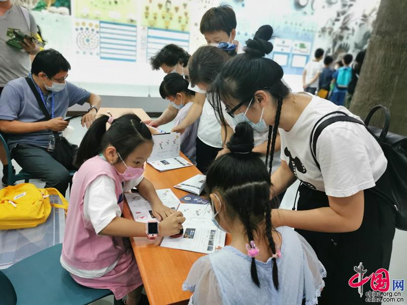 記者在活動現場看到,“護照”打卡活動受到了小朋友們的熱烈歡迎。參觀的小朋友在家長的幫助下,在各個展廳完成學習任務,收獲紀念章。