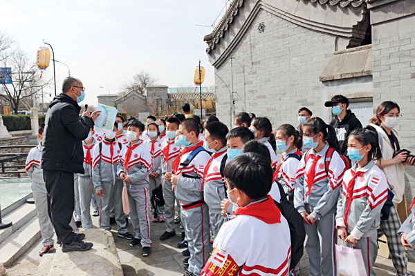 王崇臣給府學小學的同學們現場講解玉河故道
