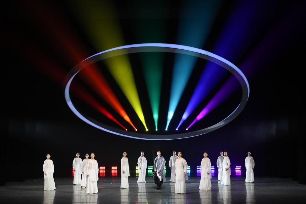 海淀區建區70年來,作為首都重要的城市行政區,人口資源豐富、民族成分多樣、文化要素聚集,在各族干部群眾的團結建設下,今天的海淀區已擁有獨特的“海淀文化力量”。中央民族歌舞團出品跨界融合戲劇藝術《柒》,聚焦鑄牢中華民族命運共同體的時代主線,以“時間長河”為主題,“各美其美、美美與共”,彰顯各民族同胞向著共同理想彼岸奮進不息的精神。