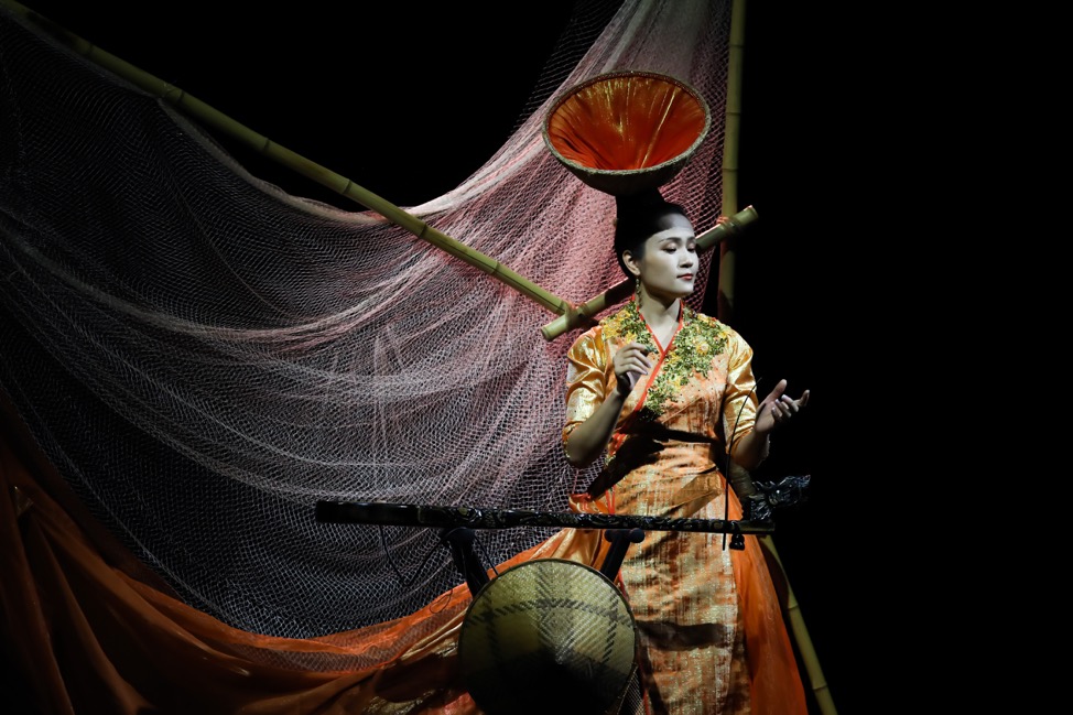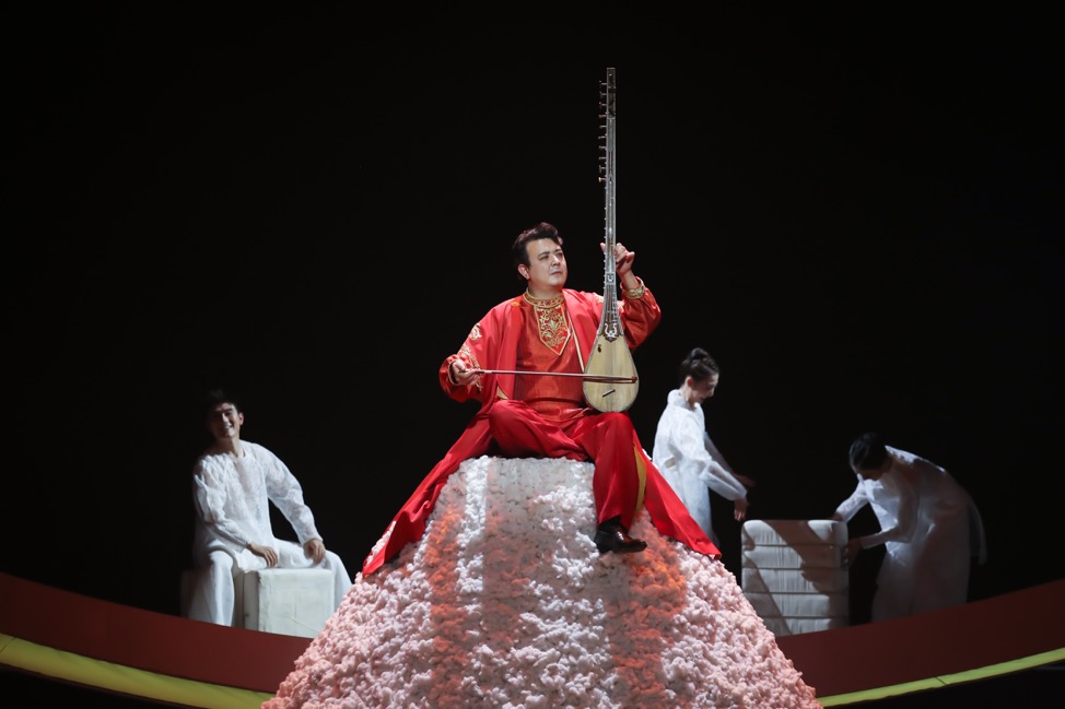 該作品堅持守正創新,其藝術特點突出,藝術表達方式新穎。作品融入了北京海淀“宏音齋”笙管制作技藝、北京海淀風箏哈制作技藝、北京市非物質文化遺產以及維吾爾族艾捷克、京族獨弦琴等多項國家級非物質文化遺產,整體營造出少數民族歌、舞、樂、非遺元素等藝術形式在當代藝術審美語境中呈現出的新樣式與新活力,從而展現中華文化的絢爛多彩。此外,作品的舞臺視覺簡約,但富有可變的功能性,不失當代設計感,與劇情的變化互為映襯。