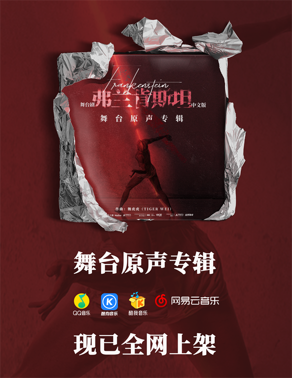 據悉,舞臺劇《弗蘭肯斯坦》中文版的同名原聲專輯也將于本周全網上線,由電子音樂家魏虎虎(魏濛)創作的先鋒配樂,為全劇營造了驚悚冷冽的氛圍感,廣受觀眾好評。