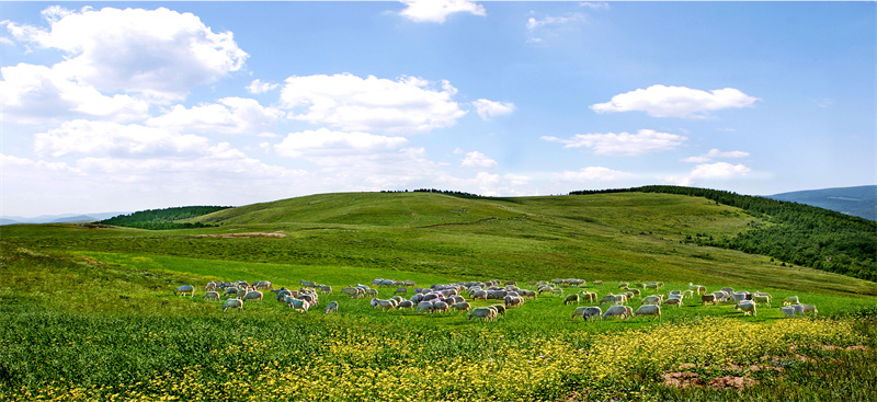 2.明安草原,位于內蒙古自治區包頭市達爾罕茂明安聯合旗,草原類型以溫性草原為主;是“草原英雄小姐妹”舍生忘死保護集體羊群的英勇事跡發生地,現有自治區文物保護單位龍梅玉榮舊居。