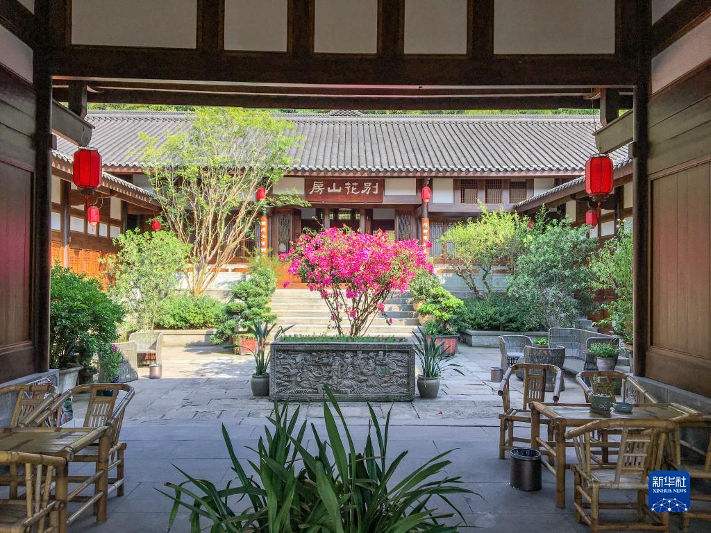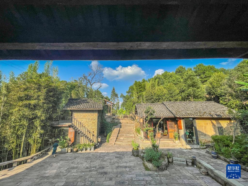 這是7月28日在重慶市巴南區天星寺鎮芙蓉村拍攝的依托清代“廖家大院”舊址上復原建造的民宿“別花山房”外部景象。新華社記者黃偉攝