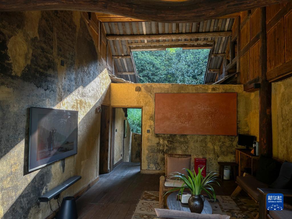 這是7月28日在重慶市巴南區天星寺鎮花房村拍攝的一家依托閑置農房改造而成的民宿。