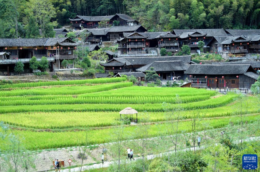 初秋時節,在湖北省宣恩縣彭家寨風景區,古色古香的吊腳樓與起伏的田壟勾勒出一幅迷人的畫卷。農民忙著“曬秋”,游客或乘坐小火車或步行游覽,樂享秋日美景。彭家寨古吊腳樓群是鄂西山區保存較完好的民居群落,歷史悠久的深山古寨經修繕保護,旅游服務等配套設施進一步提升,為當地鄉村振興注入了活力。