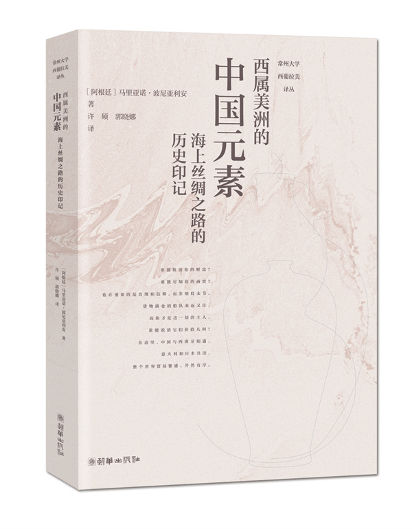 《西屬美洲的中國元素:海上絲綢之路的歷史印記》一書是常州大學與朝華出版社戰略合作項目的重要成果,由常州大學拉丁美洲研究中心主任許碩和布宜諾斯艾利斯大學博士郭曉娜翻譯,作者為墨西哥學院歷史研究中心阿根廷籍研究員馬里亞諾·波尼亞利安博士。常州大學拉美研究中心由江蘇省人民政府外事辦公室與常州大學共建、中國社科院拉美所支持,主要從事“拉美思想文化”和“中拉合作關系”方面研究。