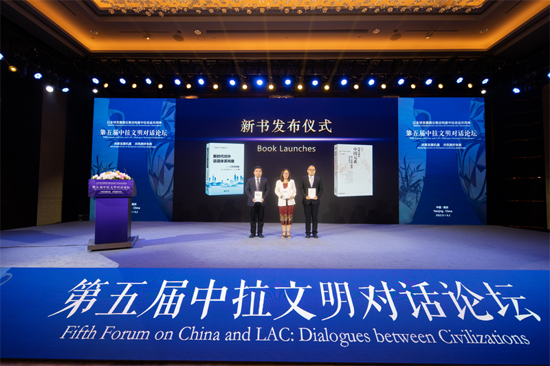 中國網9月2日訊 9月1日,在南京舉辦的第五屆“中拉文明對話論壇”上,中國外文局朝華出版社發布了“中拉文明對話”系列叢書的最新成果:江蘇省對外人文交流研究叢書《新時代對外話語體系構建——江蘇實踐篇》和常州大學西葡拉美譯叢《西屬美洲的中國元素:海上絲綢之路的歷史印記》兩部著作。