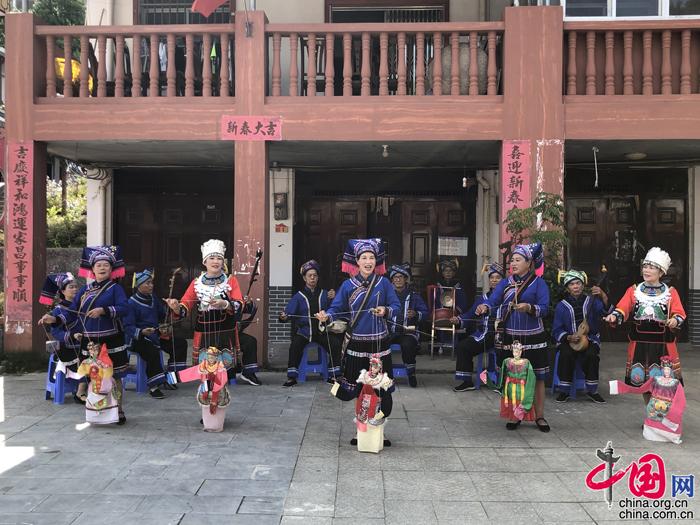 邊民著盛裝表演靖西壯族八音和提線木偶“壯苗姐妹贊瓦氏”。 攝影 中國網記者 蘇向東