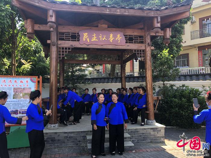 柳班村村民身著壯族服裝自編自導唱山歌感黨恩。 攝影 中國網記者 蘇向東