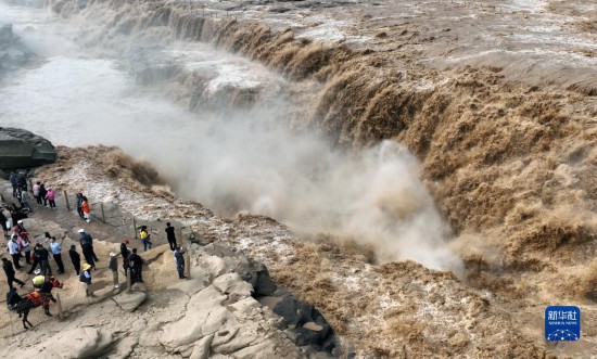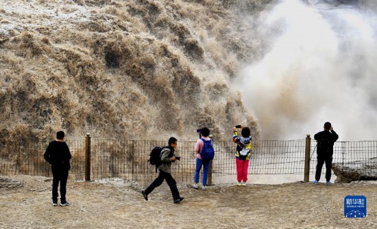 近日,秦晉交界的黃河壺口瀑布水量大增,形成綿延數百米的壯美瀑布群。