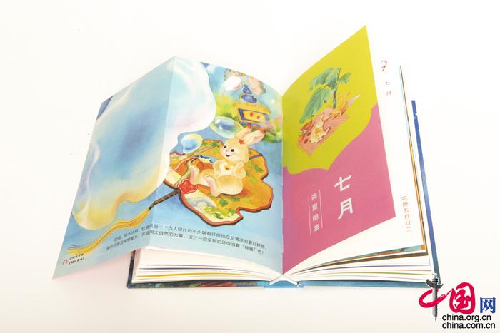 在形式上,2023年《故宮日歷》繼續創新,外觀整體采用琉璃綠,富有蓬勃活力,時尚中帶著國潮風。自2022年《故宮日歷》改版,每年的《故宮日歷》都將從故宮建筑和文物里選取顏色要素,選用一種國潮色。2023年《故宮日歷》的主色調為綠色,首先源于兔子食草性動物特征,可愛活潑,綠色也與兔子的多子寓意和嬰戲、百子主題契合;同時,綠色還來自故宮建筑及文物藏品的顏色,如紫禁城南三所屋頂覆綠色琉璃瓦,如溫潤動人的青綠山水畫。