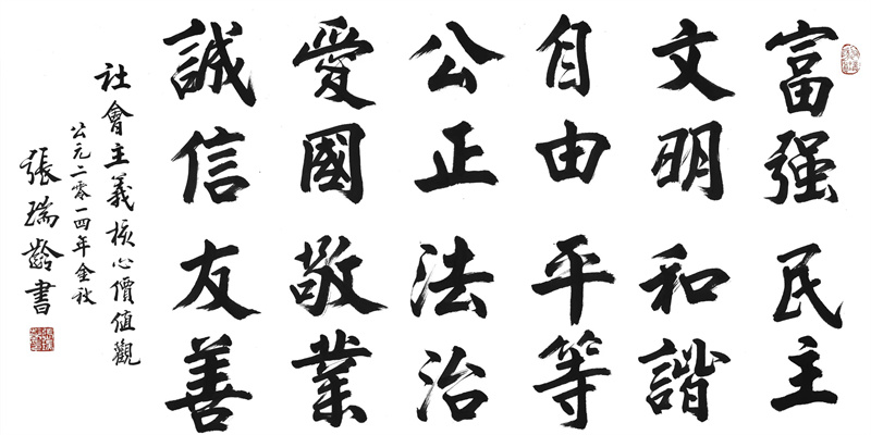 張瑞齡是我國當代著名書法家,自六歲開始習字至今已八十春秋。他以古人為師,博采眾長,遵循《書譜》“專精一體、乃至絕倫”的教義,專攻楷書。他汲古而不泥古,守正創新,反復研修,其書法端正俊朗、穩健靈動、收放自如,書風自成一體。