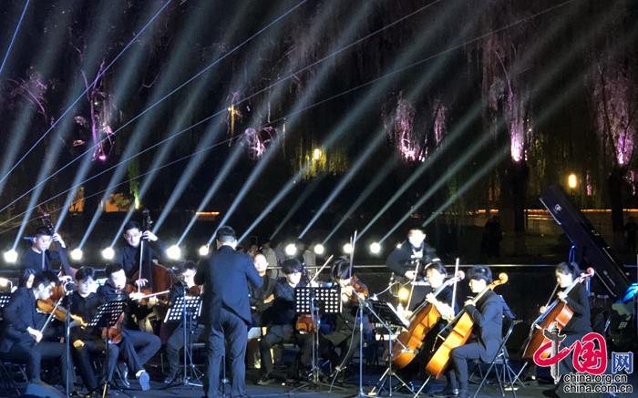 演出采用“音、舞、秀”形式,通過交響樂團、電子樂隊、服裝秀結合,打造多元視聽盛宴,全面呈現亮馬河國際風情水岸的自然、科技、人文藝術以及國際商務消費環境,展現朝陽區潮流、國際、時尚的城市氣質和發展活力。