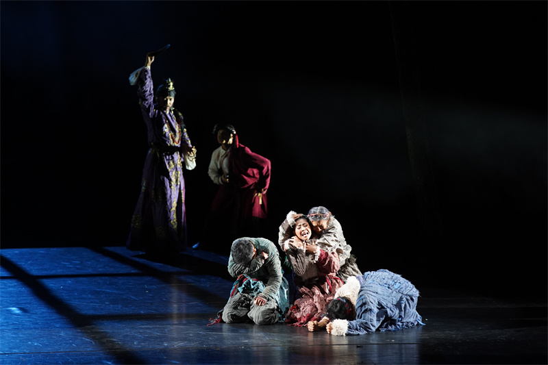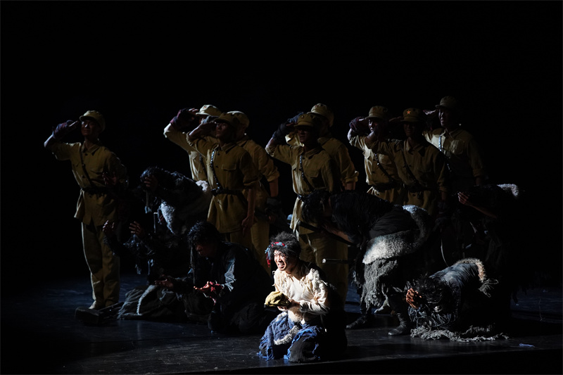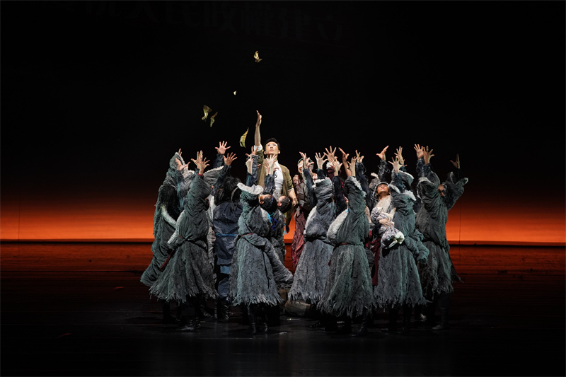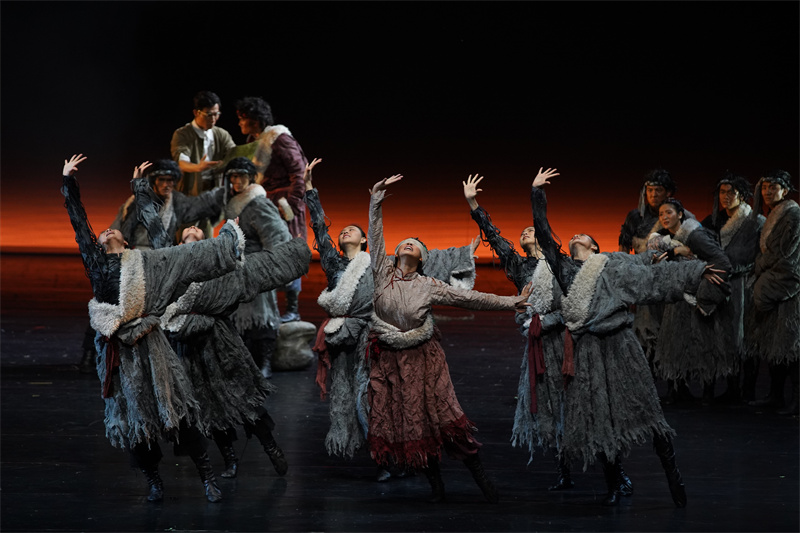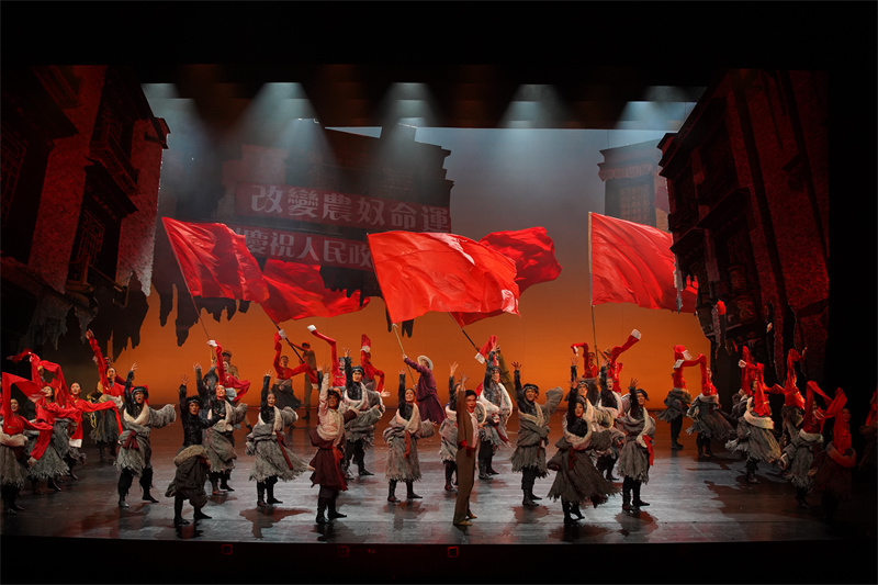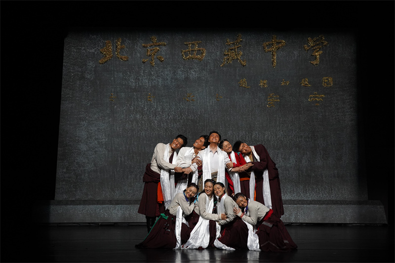 8日當晚,北京舞蹈學院展演的舞劇《唱支山歌給黨聽》,青年舞團的演員們及中國民族民間舞系的學生們通過戲劇性的身體語言、意象化的時空場景,展現了和平解放西藏時期,在解放軍和黨員干部的帶領下,三個藏族孤兒改變了農奴的命運,當家做主的動人情境。他們重獲新生的真實歷程見證了西藏日月新天的歷史巨變。在極具民族特色的舞美映襯下,學生們用身體語言演繹了感人至深的動人故事,用昂揚向上的奮斗精神展現了新時代的奮斗風貌。