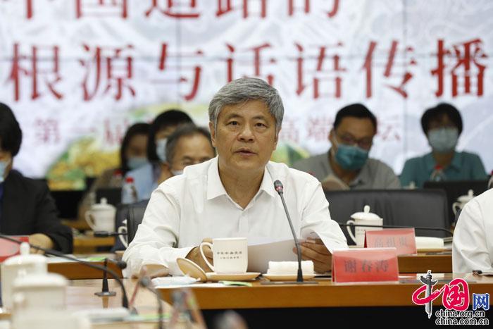 謝春濤在致辭中首先介紹了成立兩個研究中心并舉辦文化強國論壇的背景。他指出,為學習貫徹總書記關于馬克思主義中國化的“兩個結合”、中華文明與中國道路以及加強與改進國際傳播工作系列重要講話精神,中央黨校(國家行政學院)校(院)委前不久決定成立中華文明與中國道路研究中心、國際傳播研究中心,掛靠在文史教研部,組織全??绮块T力量加強研究,同時加強與國內外學術交流。謝春濤結合本屆論壇主題,對兩個“中心”的工作提出具體要求:第一,要以習近平新時代中國特色社會主義思想為指導,堅持馬克思主義中國化的“兩個結合”,立足中華文明深化中國道路的學理研究,加快構建中國話語和中國敘事體系;第二,要加快建構對外傳播話語體系,把“道”貫通于故事之中,講好中國故事,提升國際話語權;第三,要錘煉一批思想性學術通才,形成一支具有跨學科、跨文明交流能力的人才隊伍。
