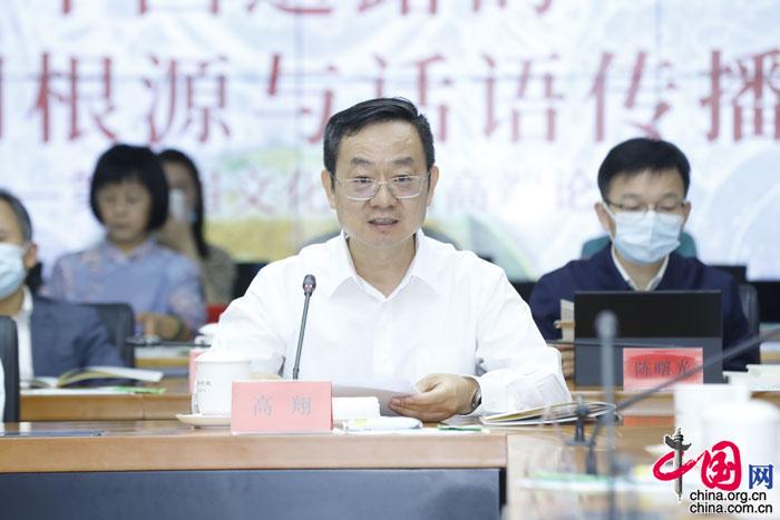 高翔在致辭中代表中國社會科學院中國歷史研究院對兩個“中心”的成立熱烈祝賀,表示將全力支持兩個中心的建設和發展,攜手合作,為中華民族偉大復興提供智力支持。他認為,中國道路是中華民族5000多年的悠久文明中走出來的,具有深厚歷史淵源與現實基礎,習近平總書記系列重要講話深刻揭示了中華文明與中國道路的內在聯系。他談了自己三點理解:第一,一脈相承、積淀深厚是中華文明的鮮明特色,中華優秀傳統文化是中華民族的精神根源,鑄就了獨特的思想理念、文化基因,是我們歷史自信的底氣;第二,中國道路厚積于中華文明的歷史,一個國家走什么樣的歷史道路由這個國家的歷史傳統、社會形態所決定;第三,在傳承歷史中開創未來,中國共產黨是中國優秀傳統文化的忠實繼承者和發展者。