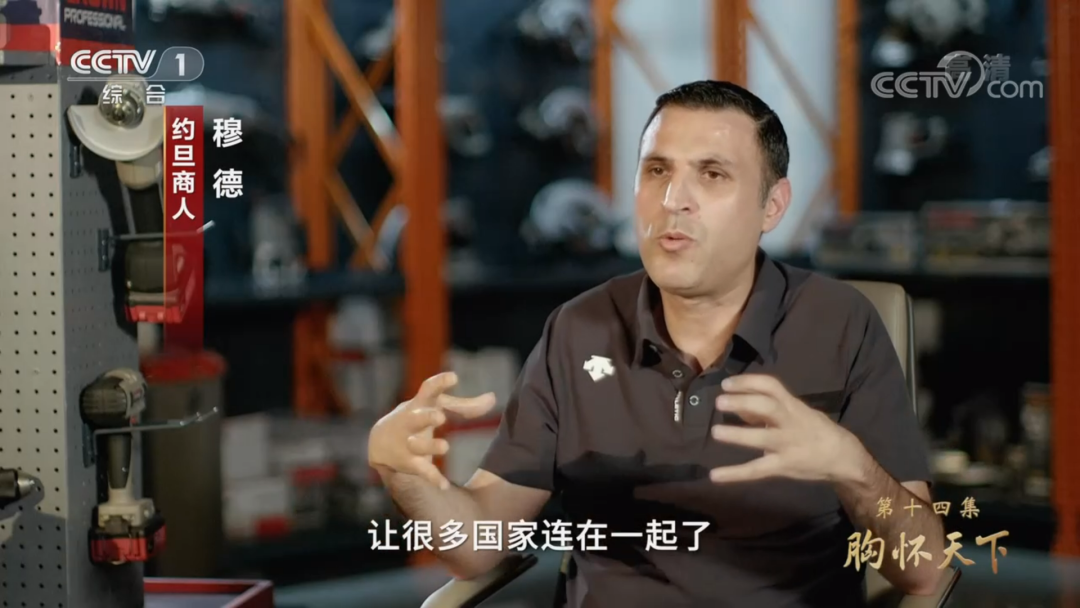 第十四集《胸懷天下》,在浙江義烏創業的約旦商人穆德,從3萬元人民幣起家做外貿,如今將義烏小商品出口到了約旦、阿爾及利亞、摩洛哥等13個國家和地區?!耙粠б宦贰背h給沿線國家創造了實實在在的經濟社會效益。