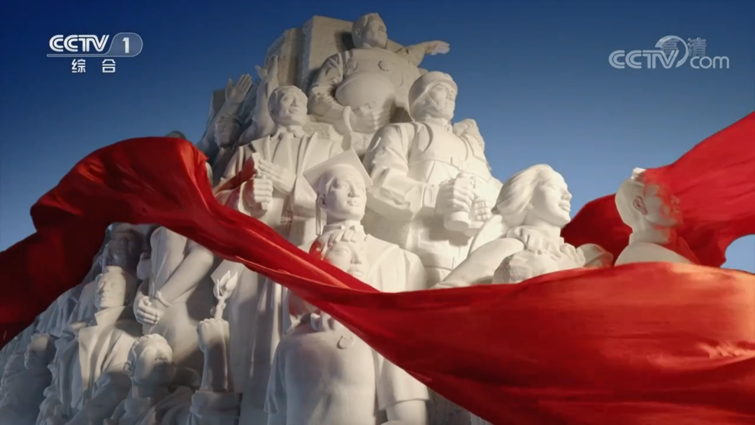 片頭以藝術“虛寫”。連續三天的拍攝,將中國共產黨歷史展覽館內的五組雕塑,化成了在時代浪潮里乘風破浪的領航巨輪,配上總書記鏗鏘有力的話語,體現出中國人民踔厲奮發、團結向上的昂揚姿態。雕塑是凝固的瞬間,在片頭用雕塑呈現這十年,恰恰增加了片子的體量和厚重感。