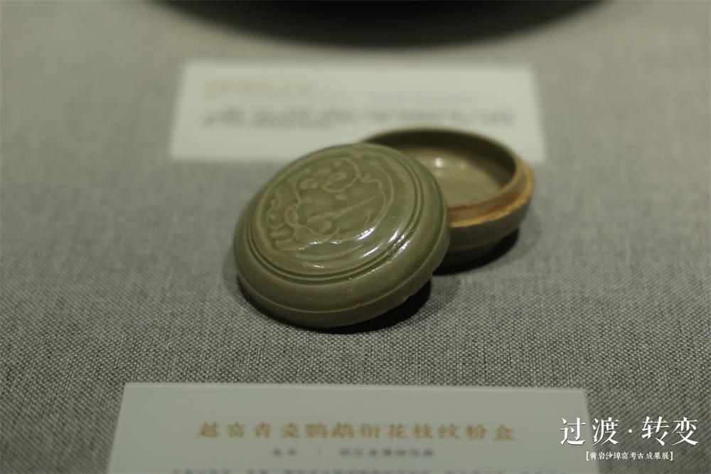 越窯青瓷鸚鵡銜花枝紋粉盒