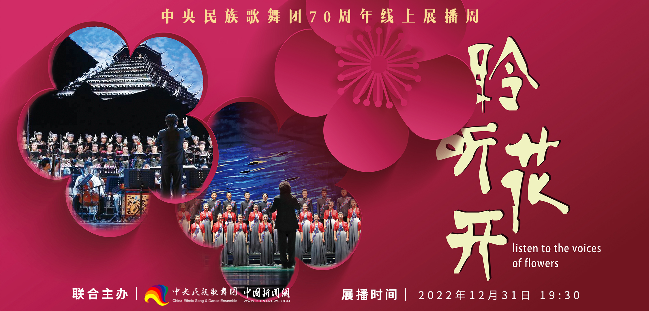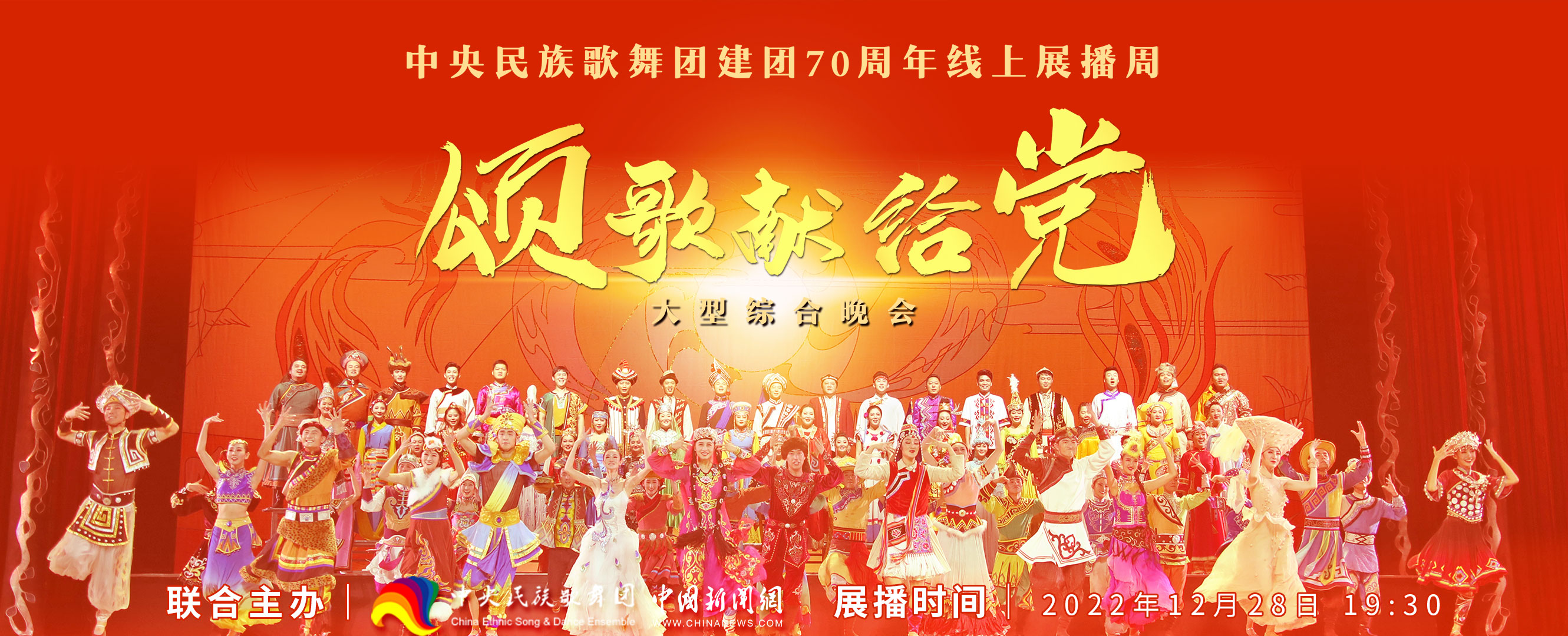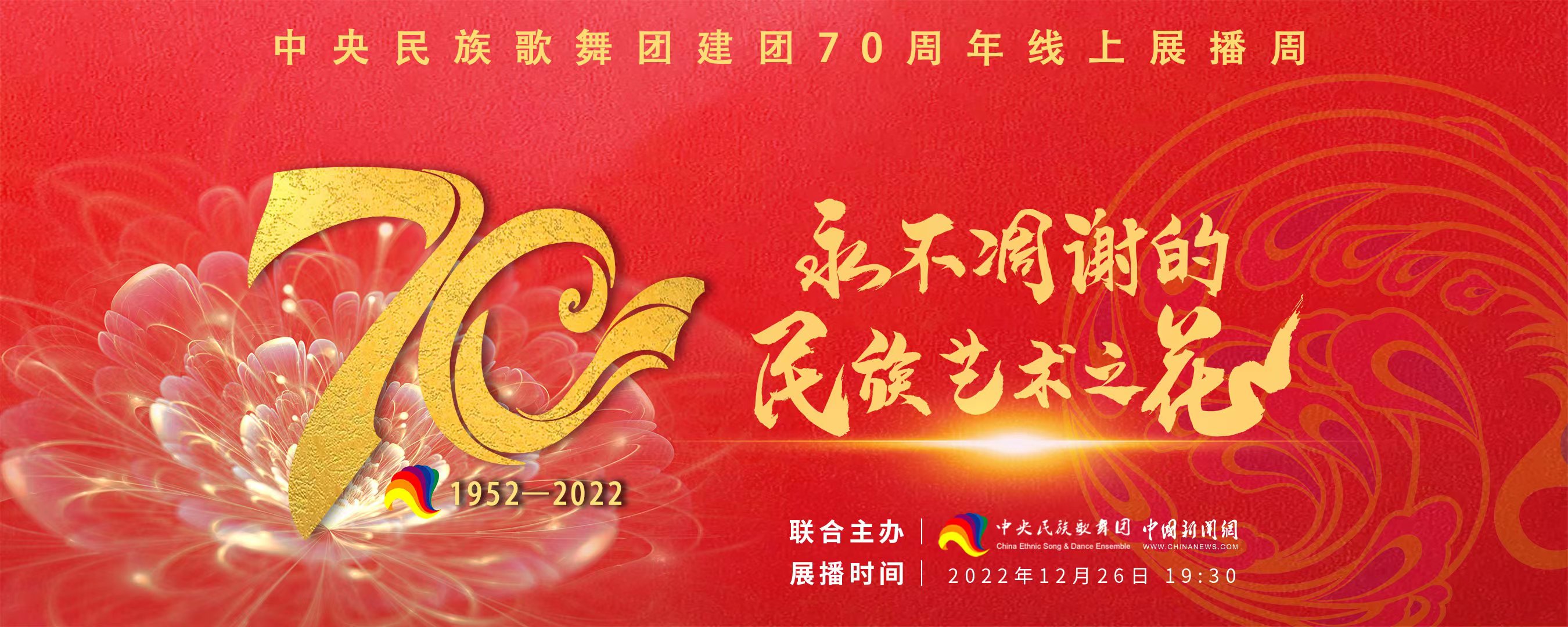 中國網北京12月26日訊(記者張芃芃)為慶祝建團70周年,中央民族歌舞團將從今日起舉辦“建團70周年線上展播周”活動。此次活動打破傳統劇場的物理地域限制,以沉浸式的線上舞臺空間,全方位展示中央民族歌舞團近年來創作成果。展播內容包括70周年團慶節目展播及舞蹈晚會《舞彩家園》、綜合晚會《頌歌獻給黨》、跨界融合戲劇藝術《柒》、非遺專場《人民的非遺》、音樂會《聆聽花開》、青年人才專場晚會《篤行致遠》等7場精選劇目,力圖用文藝的方式描繪中華民族一家親的美好圖景,表達各族兒女對黨、對祖國的感恩和祝福。