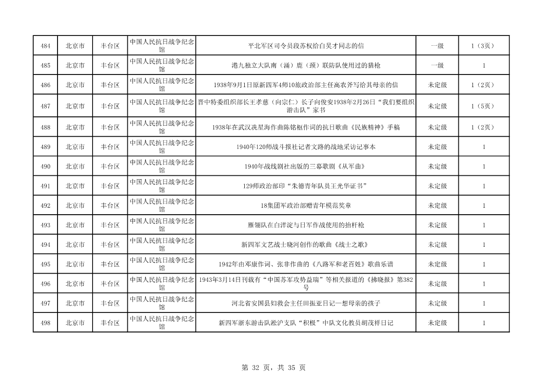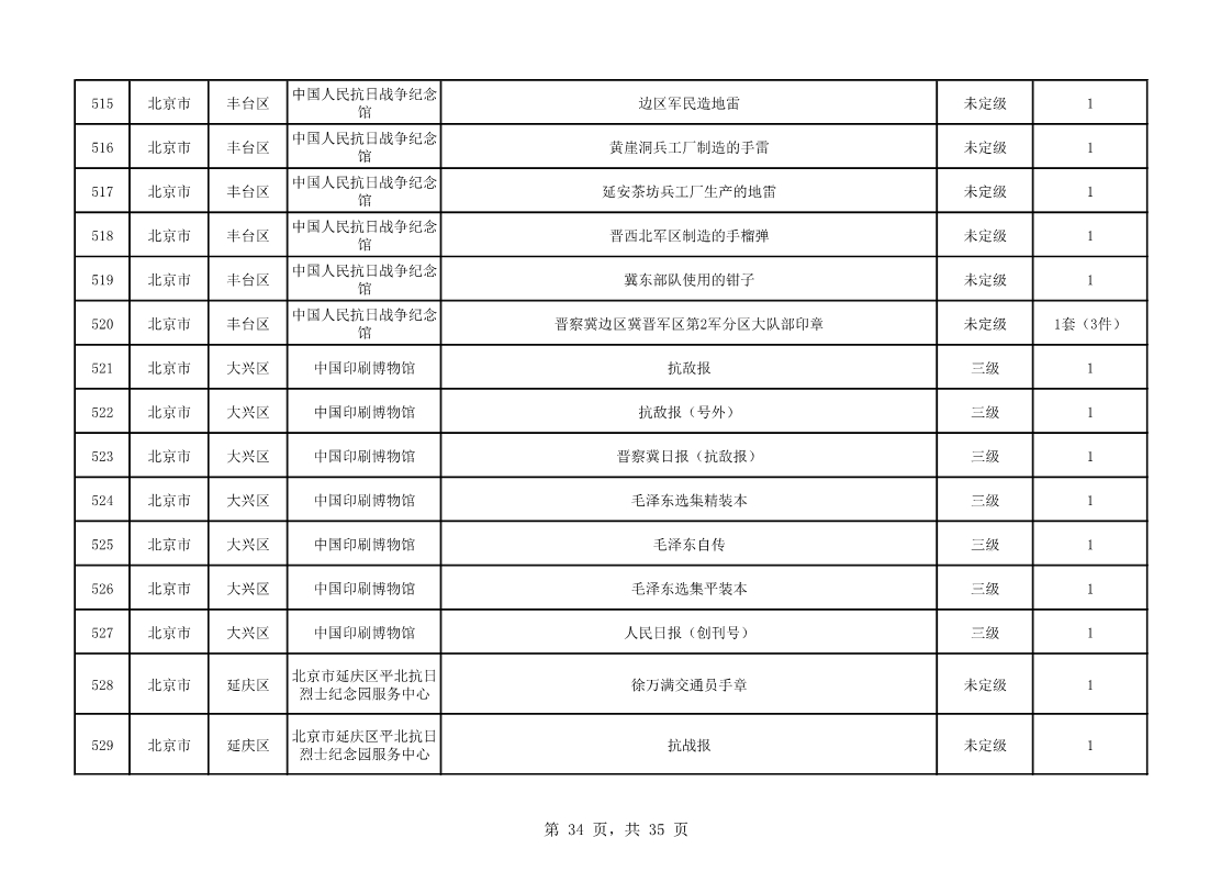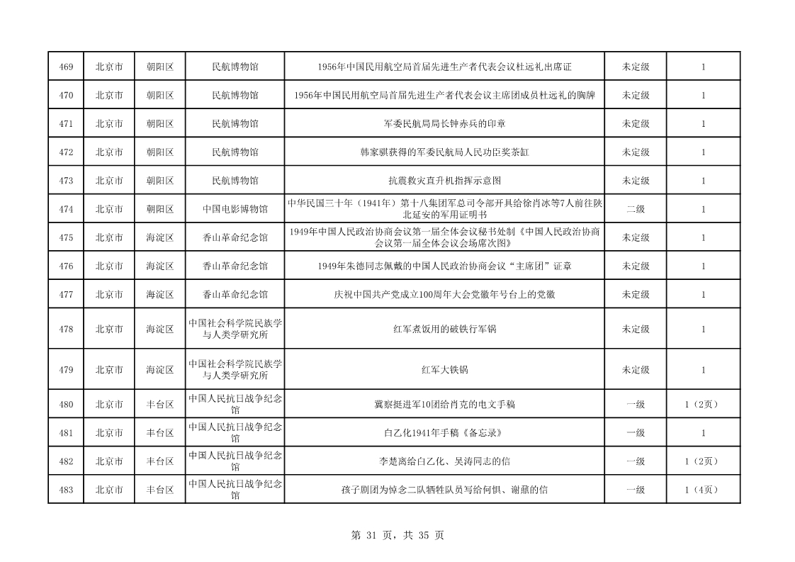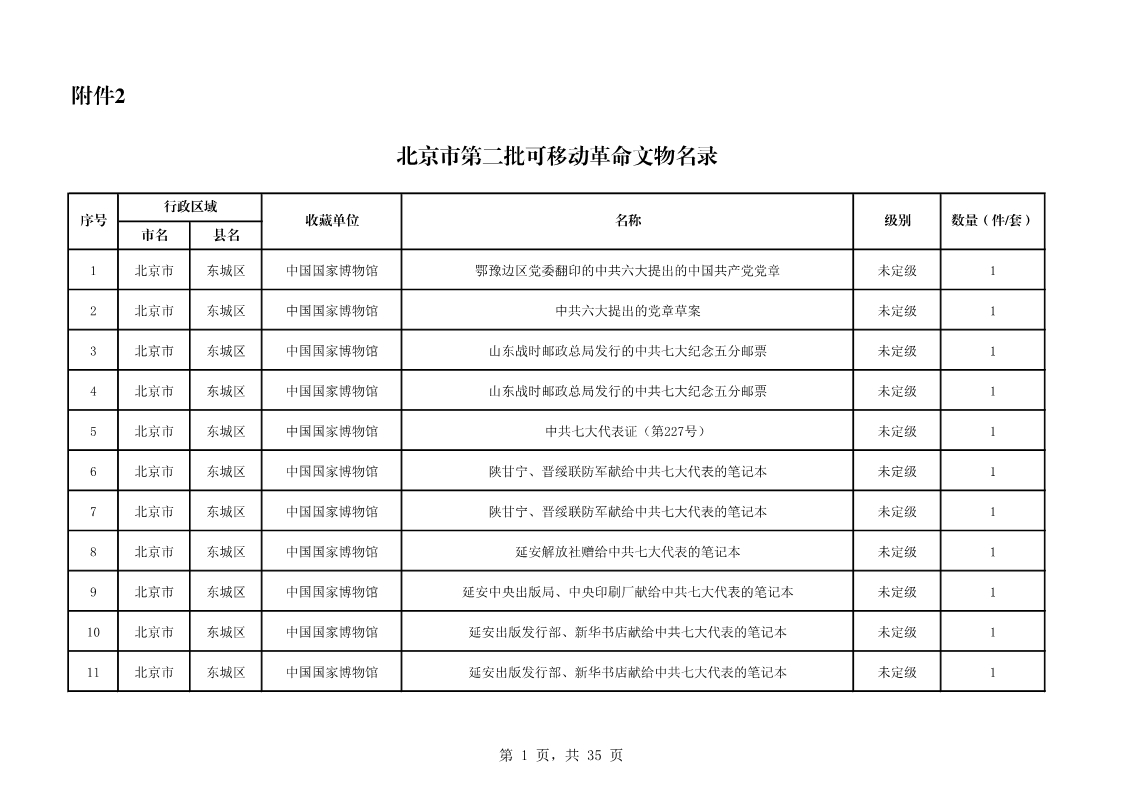 北京市第二批可移動革命文物名錄(共535件/套)