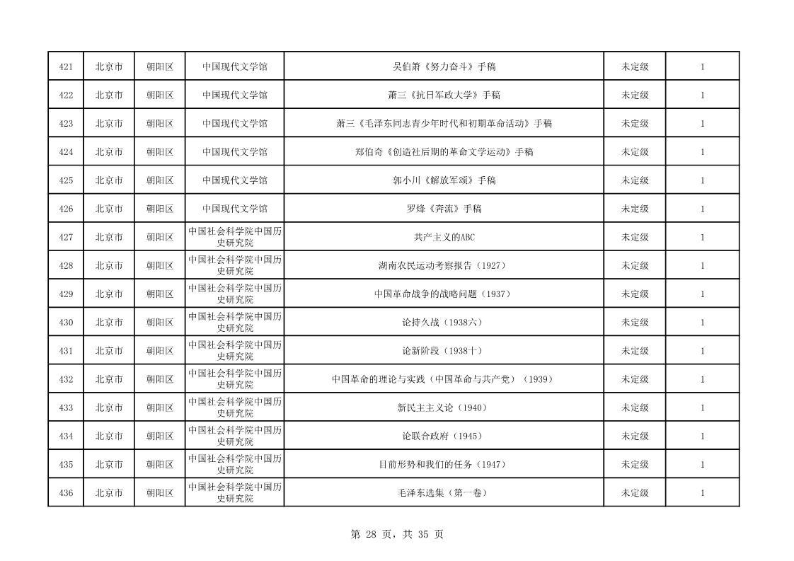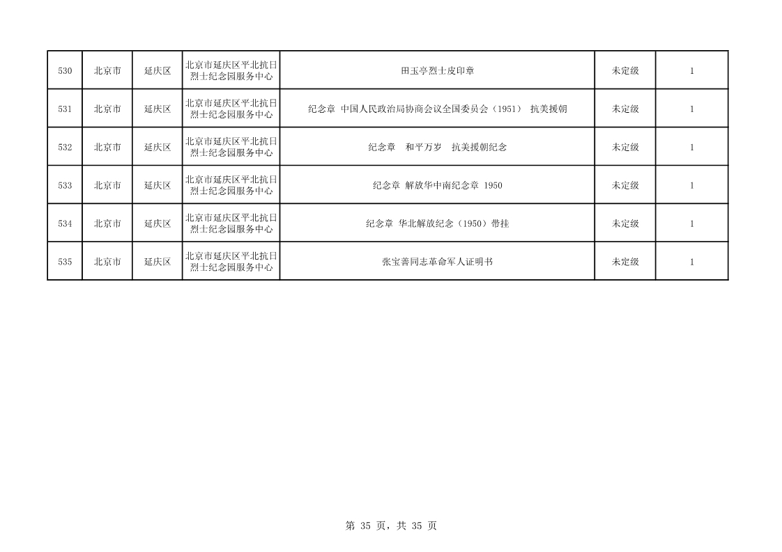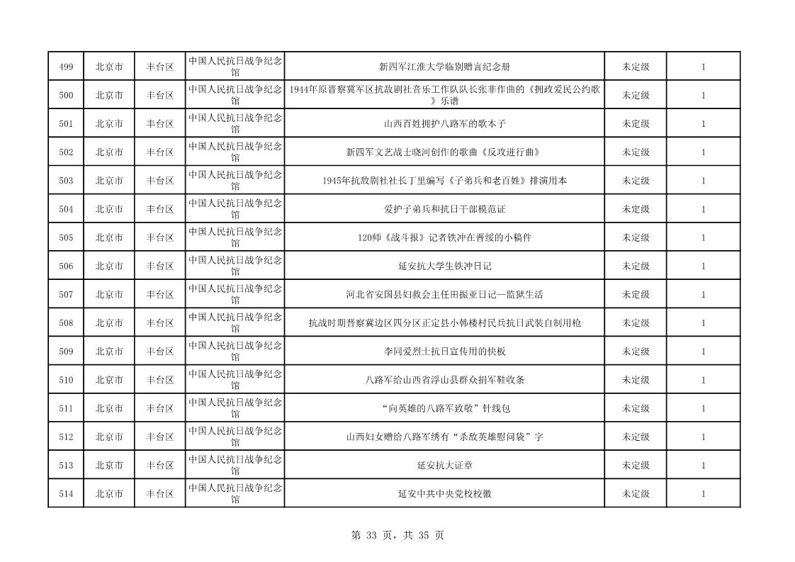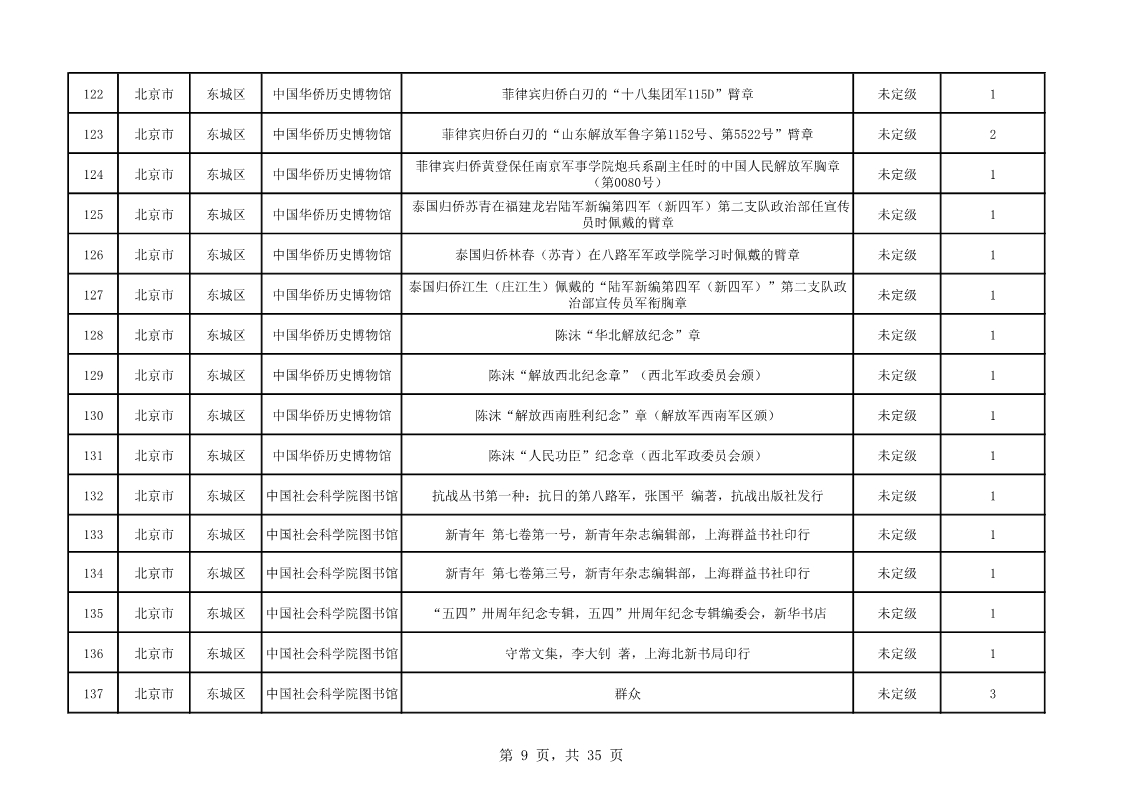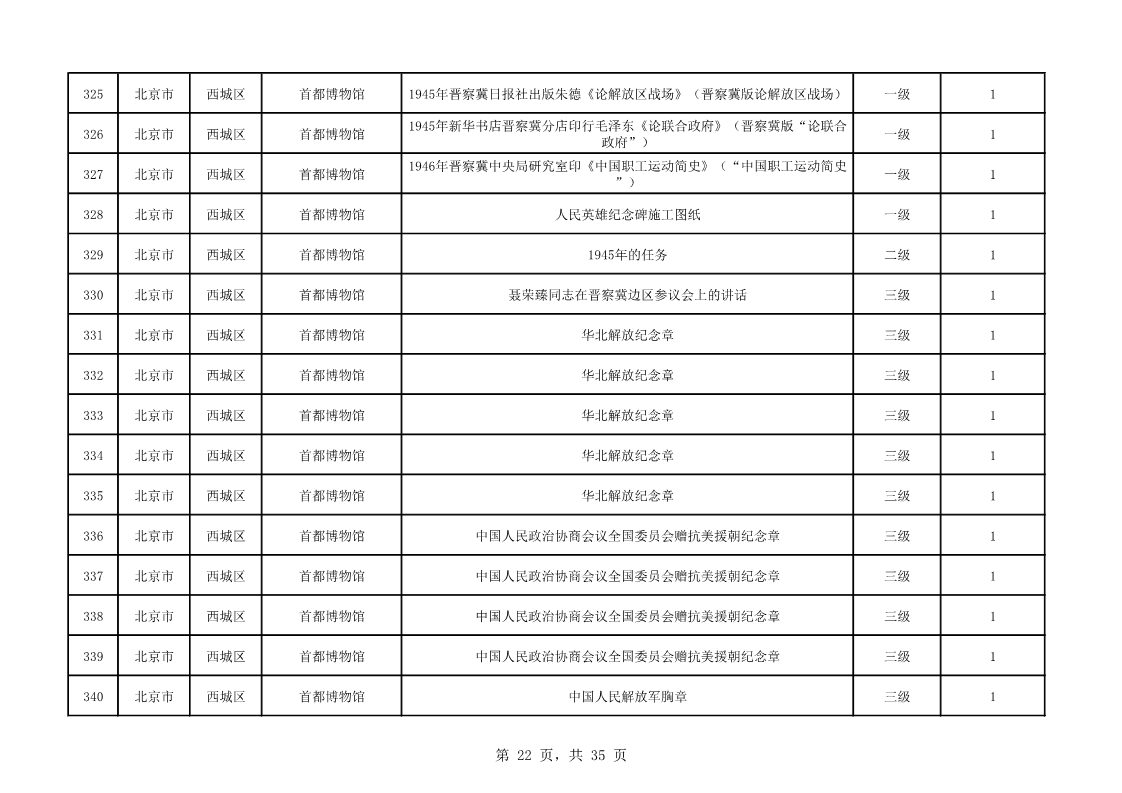 北京市第二批可移動革命文物名錄(共535件/套)