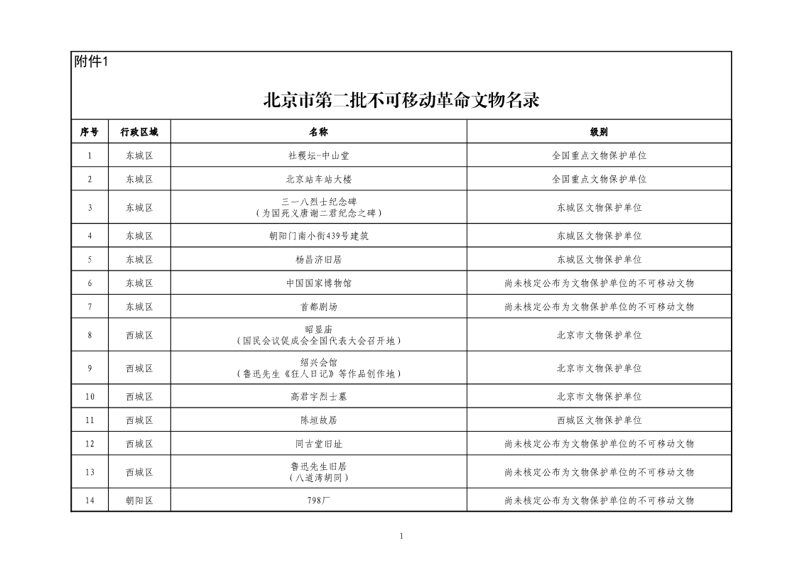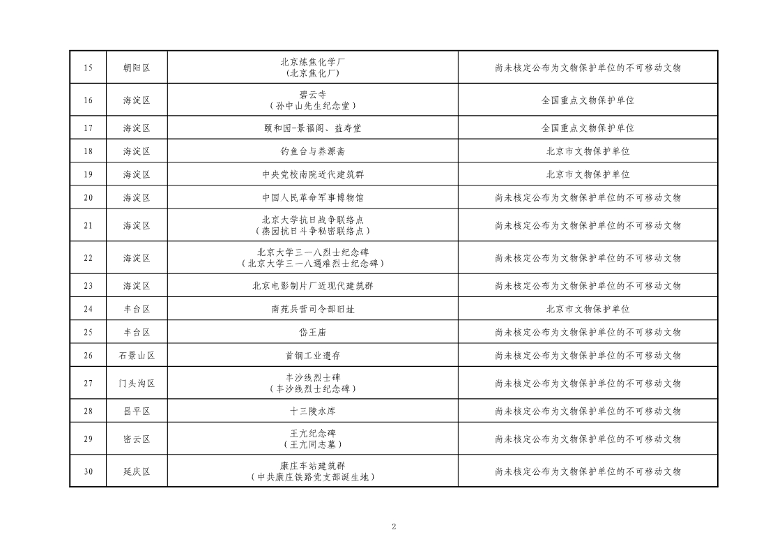 附:北京市第二批不可移動革命文物名錄(共30處)