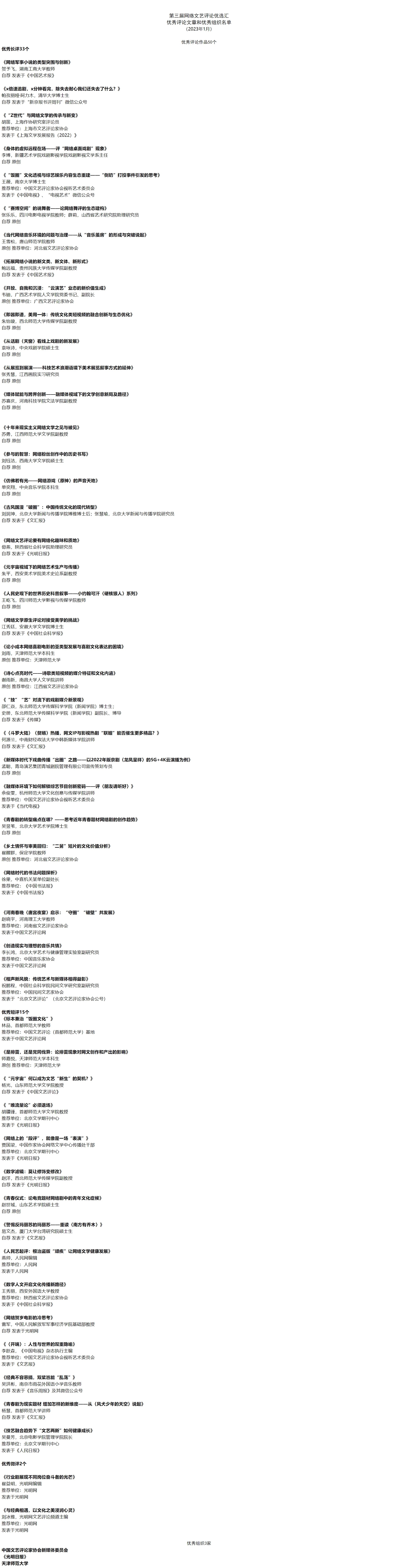 第三屆網絡文藝評論優選匯優秀作品和優秀組織名單