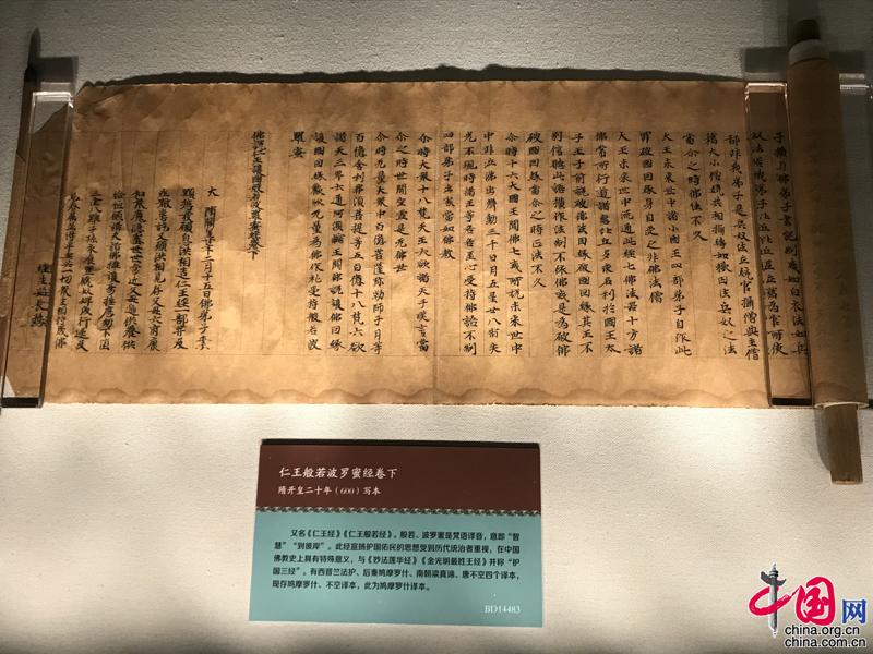 《仁王般若波羅蜜經卷下》隋開皇二十年(600)寫本 攝影 中國網記者 蘇向東