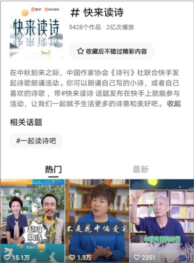 《詩刊》社、快手聯合舉辦的“快來讀詩”活動話題截圖